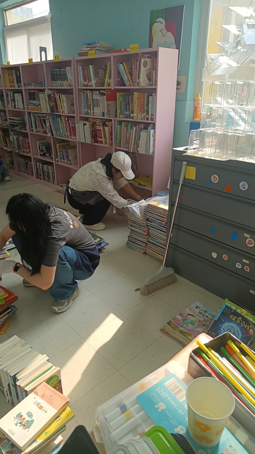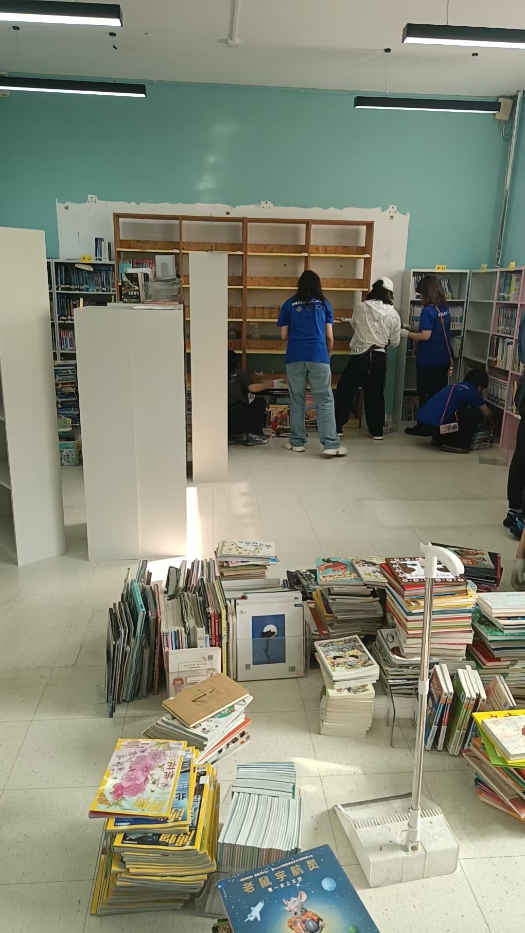 图书馆旧颜换新貌,和社会志愿团体一起,把我们原来的旧书架换掉!新书架粉白相间,特......