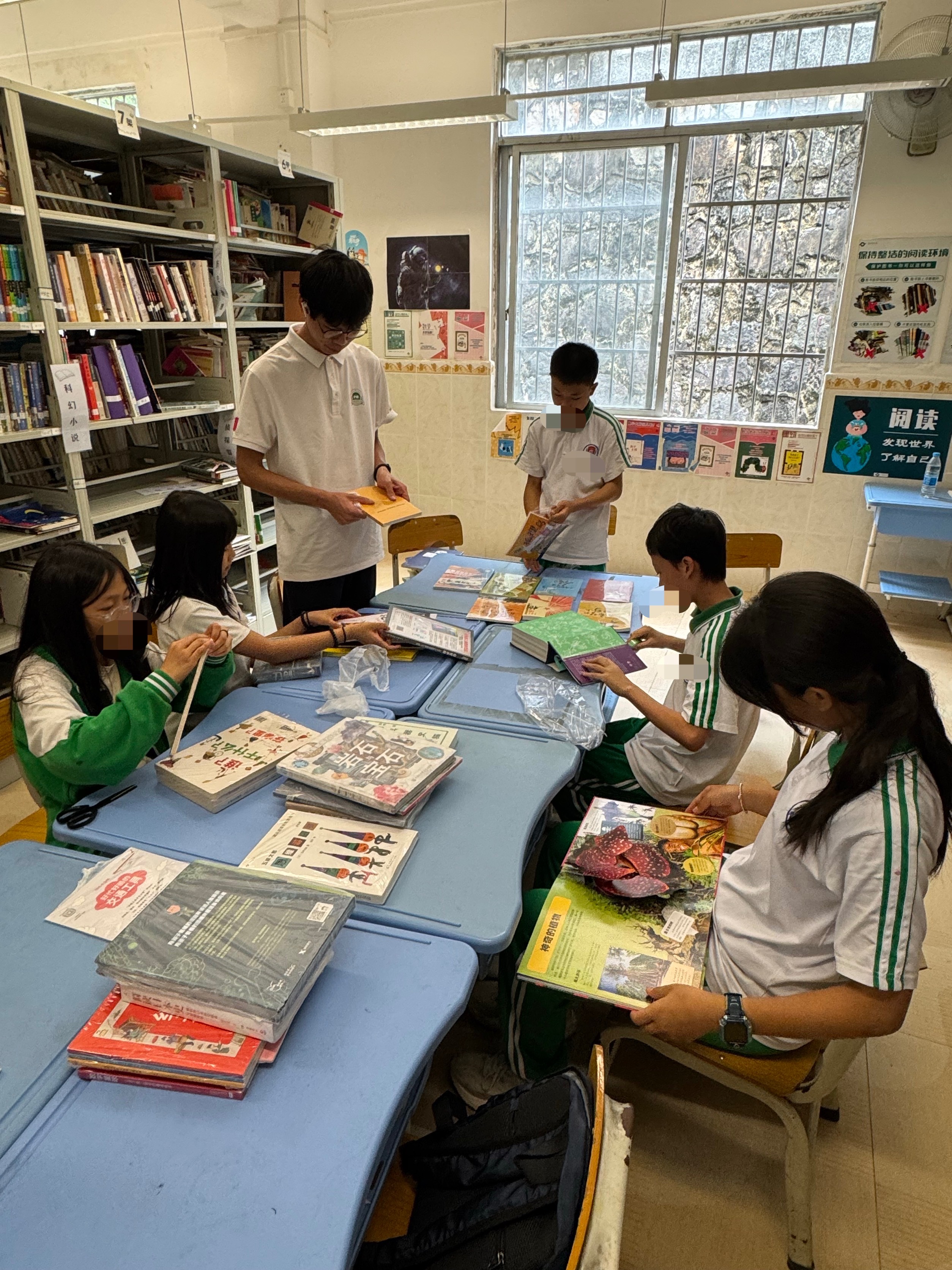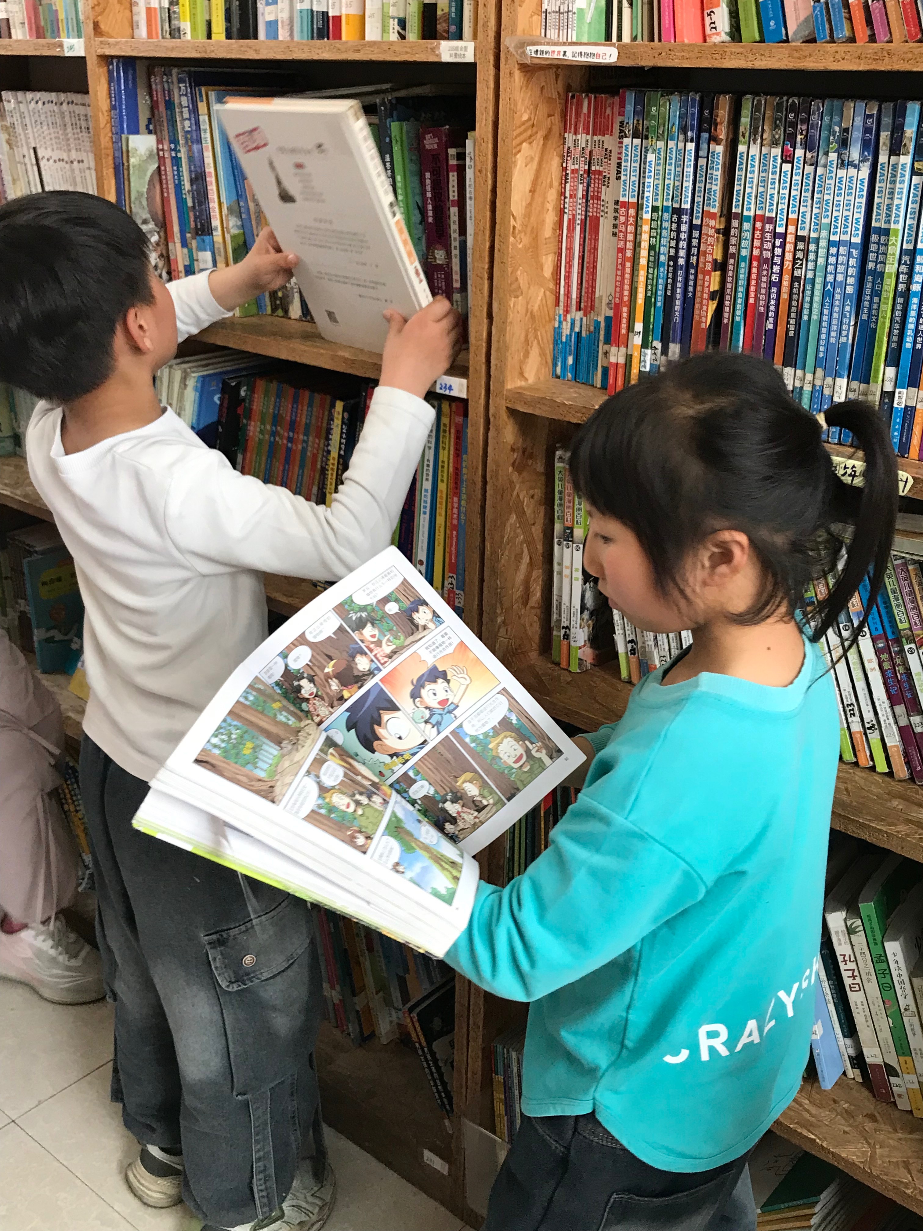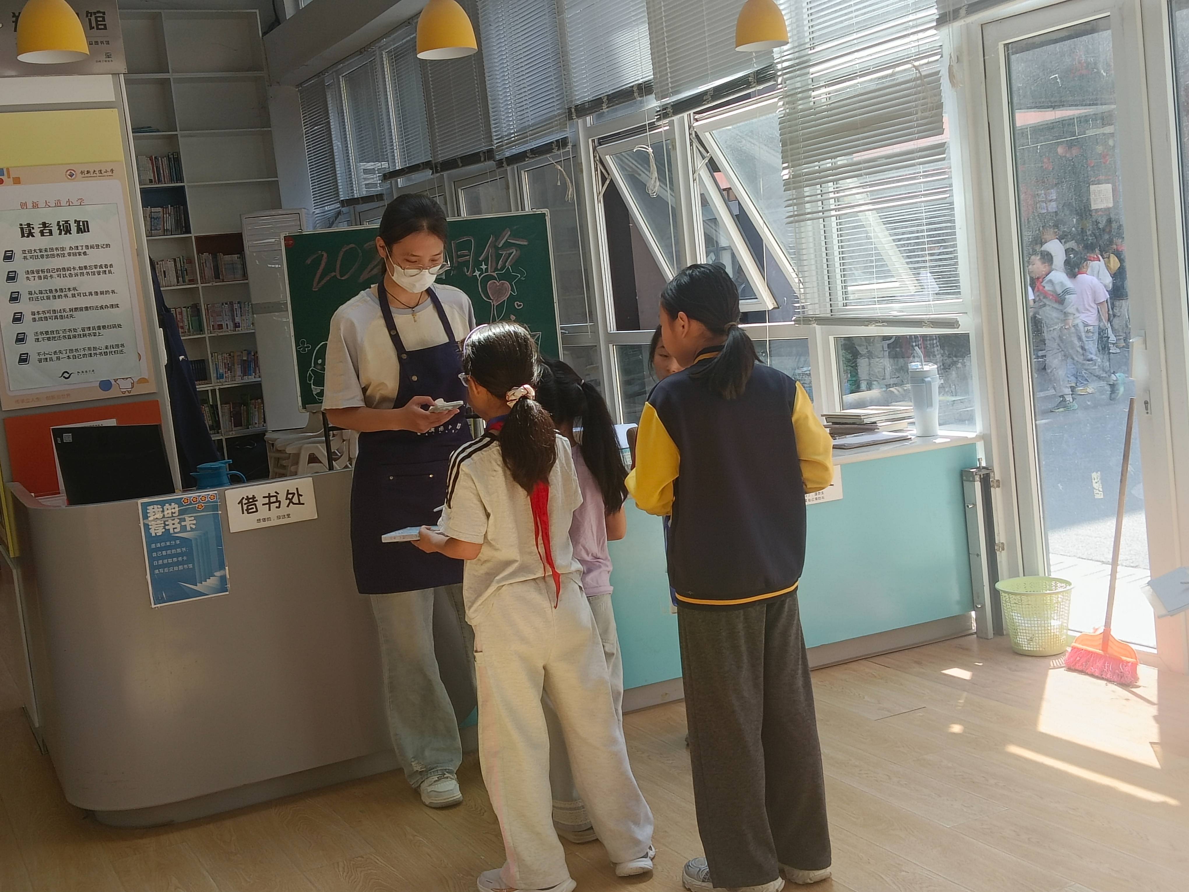 今天虽然下雨,但孩子们借书的热情依旧,还书也很多